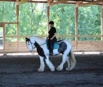We offer English riding lessons with focus on dressage. We have lesson horses for various rider needs - from a 100% bomb-proof horse for fearful beginners to athletic dressage schoolmaster horses.